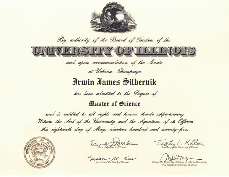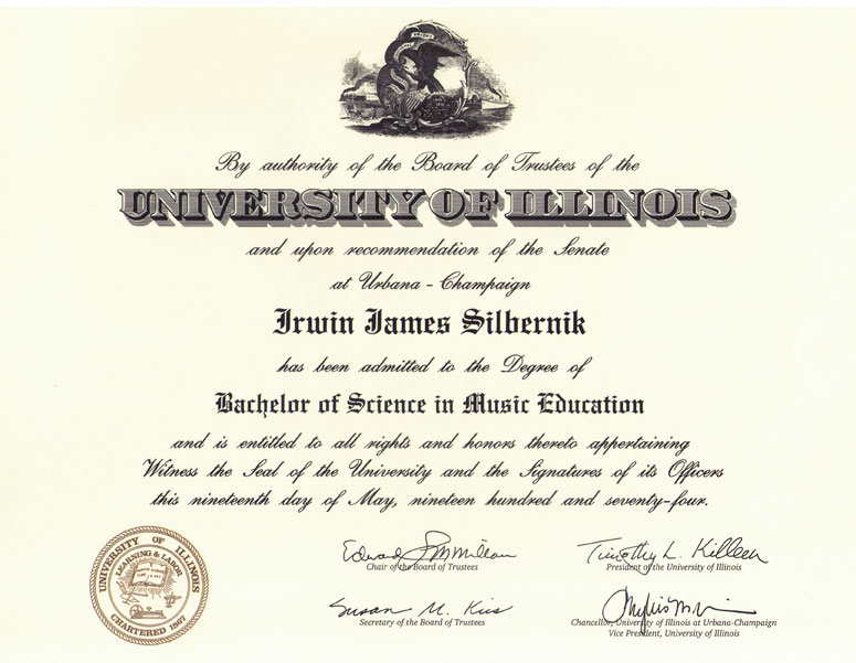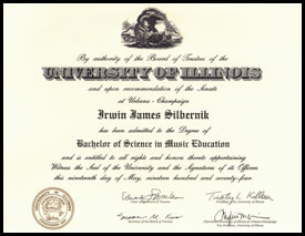 Irwin received his Bachelor of Music Education degree from the University of Illinois in 1974, and his Master's degree in Music Education a year later, in 1975.